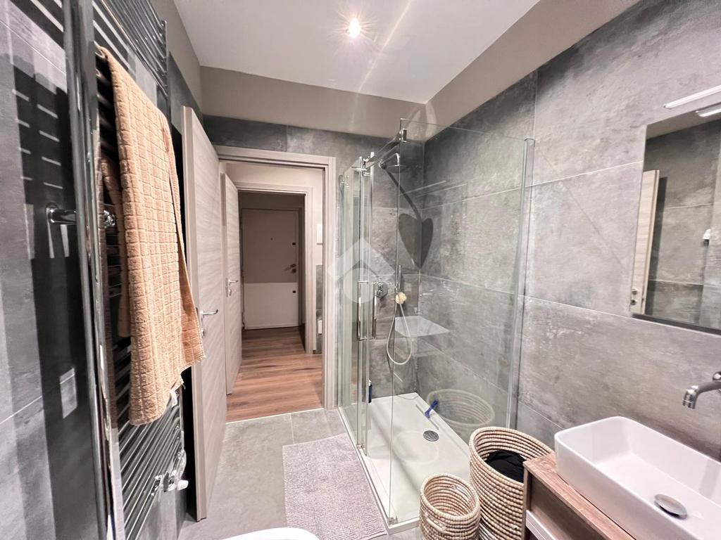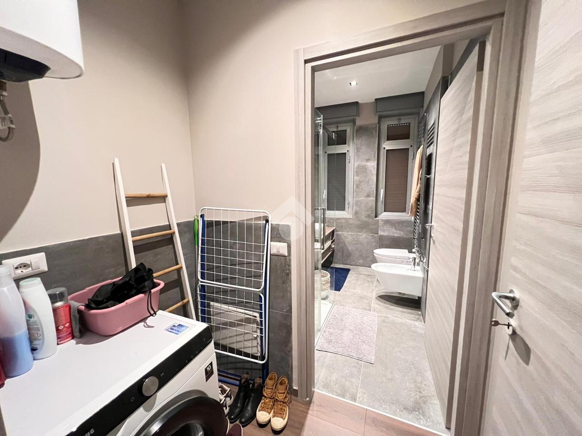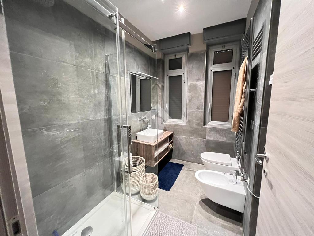 L’appartamento, completamente ristrutturato, tra cui infissi in alluminio con doppio vetro, serrande elettriche e aria condizionata.
