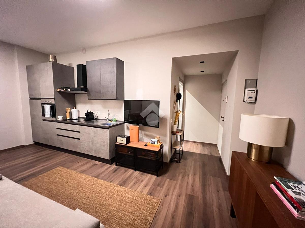 L’ingresso conduce direttamente al luminoso soggiorno con cucina a vista, ideale per chi ama gli spazi moderni e funzionali. La zona notte è composta da una camera matrimoniale spaziosa e ben organizzata. Completano la proprietà un bagno con box doccia e una pratica zona lavanderia.