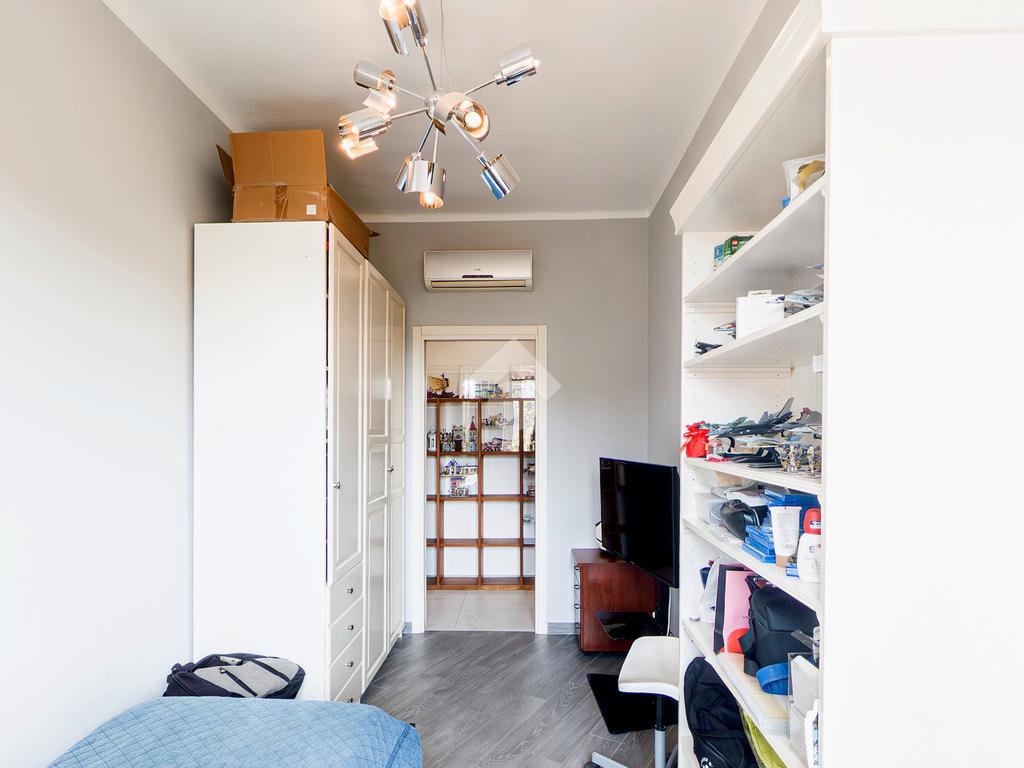 La ristrutturazione è stata eseguita con grande attenzione: i pavimenti sono in gres porcellanato effetto marmo opaco, gli infissi sono in alluminio con doppi vetri, le serrande elettriche assicurano isolamento acustico e sicurezza, ogni ambiente è climatizzato, garantendo il massimo comfort in tutte le stagioni, mentre il riscaldamento centralizzato è dotato di termo-valvole.