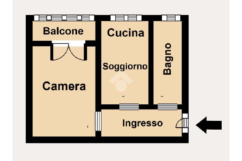 L'ingresso si apre su un ampio disimpegno che accompagna alla zona giorno, composta da un soggiorno luminoso con cucina a vista. Proseguendo, si accede alla spaziosa camera da letto matrimoniale, con affaccio diretto sul balcone, ideale per momenti di relax all'aria aperta. Il bagno è finestrato e dotato di box doccia.