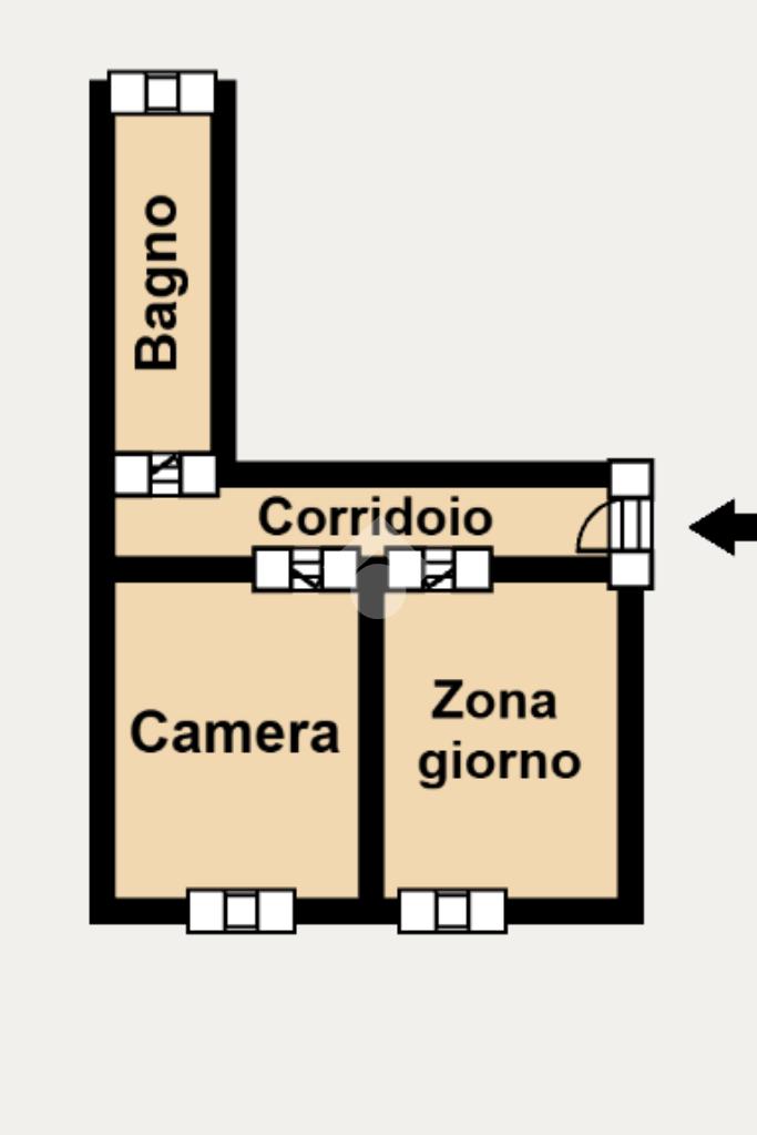 L’ingresso si apre su un pratico disimpegno che conduce alla luminosa zona giorno, composta da soggiorno con cucina a vista. La zona notte include una spaziosa camera matrimoniale, mentre il bagno, finestrato, è dotato di box doccia.