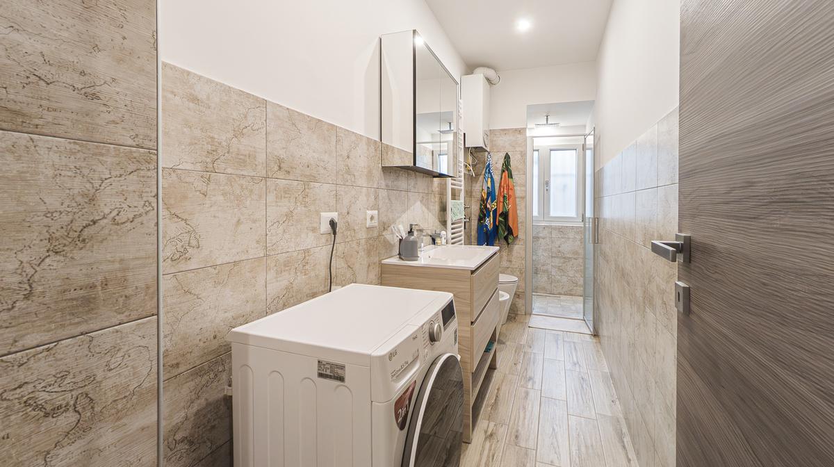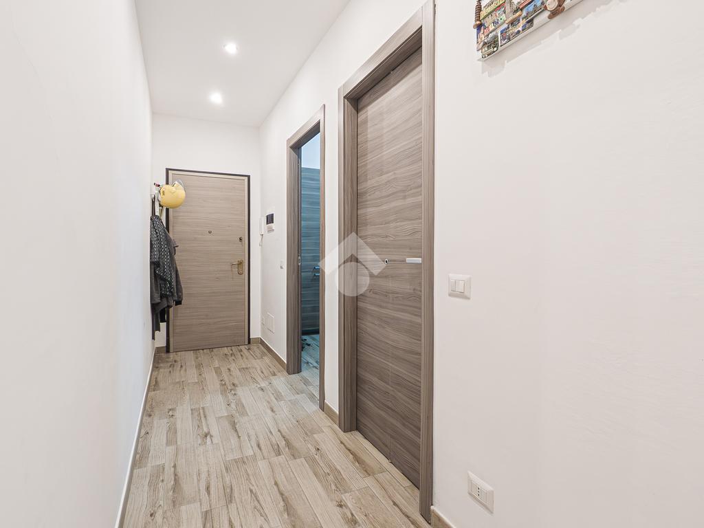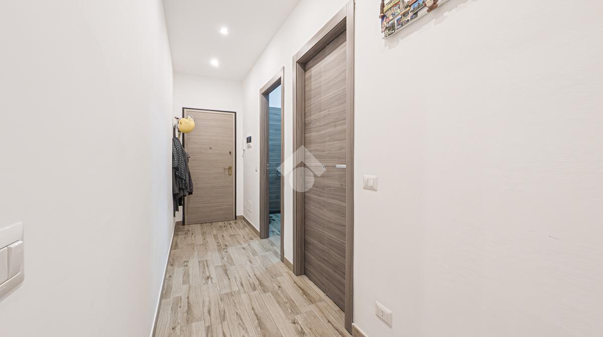 L’immobile è ristrutturato: infissi in PVC triplo vetro con serrande elettriche, pavimentazione in gres effetto parquet, aria condizionata e riscaldamento centralizzato. La doppia esposizione est–ovest garantisce una piacevole luminosità durante tutto l’arco della giornata.