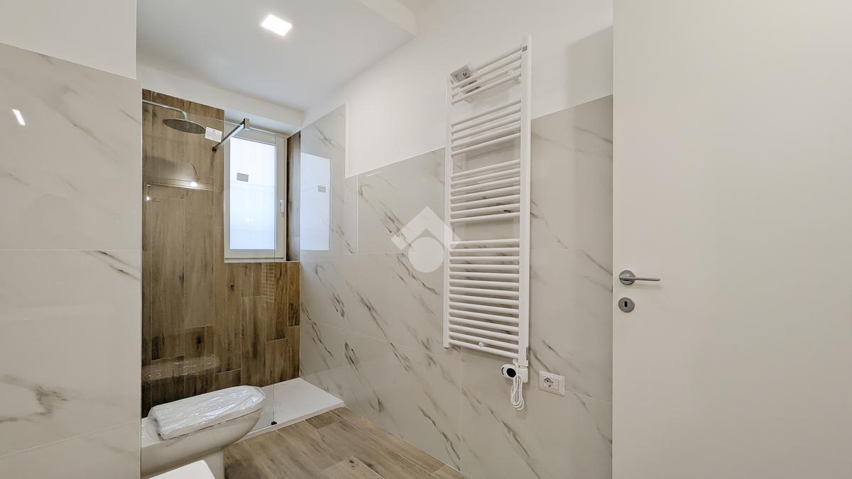 L’appartamento è stato ristrutturato con cura e dispone di infissi in PVC con doppio vetro, impianti nuovi, aria condizionata e pavimenti in gres effetto parquet.
