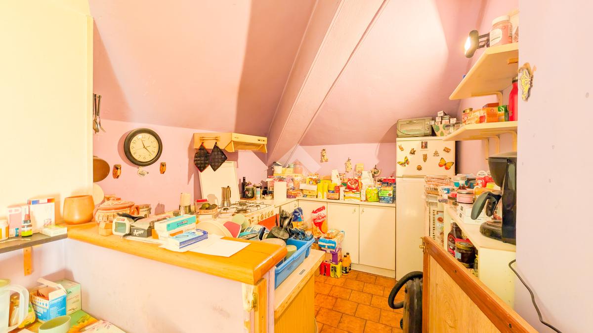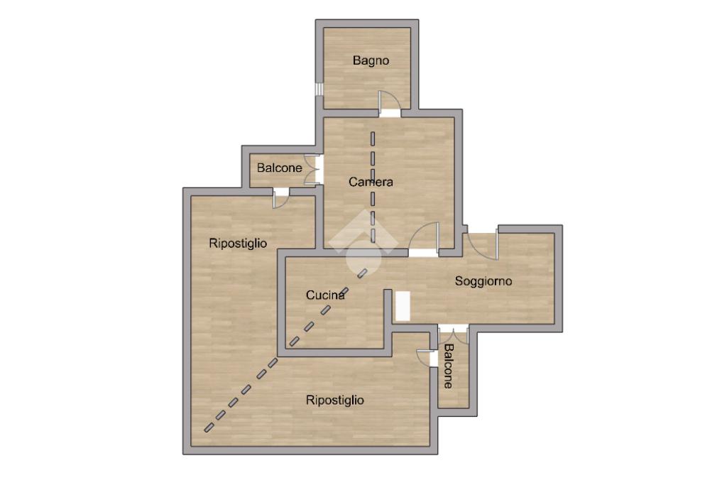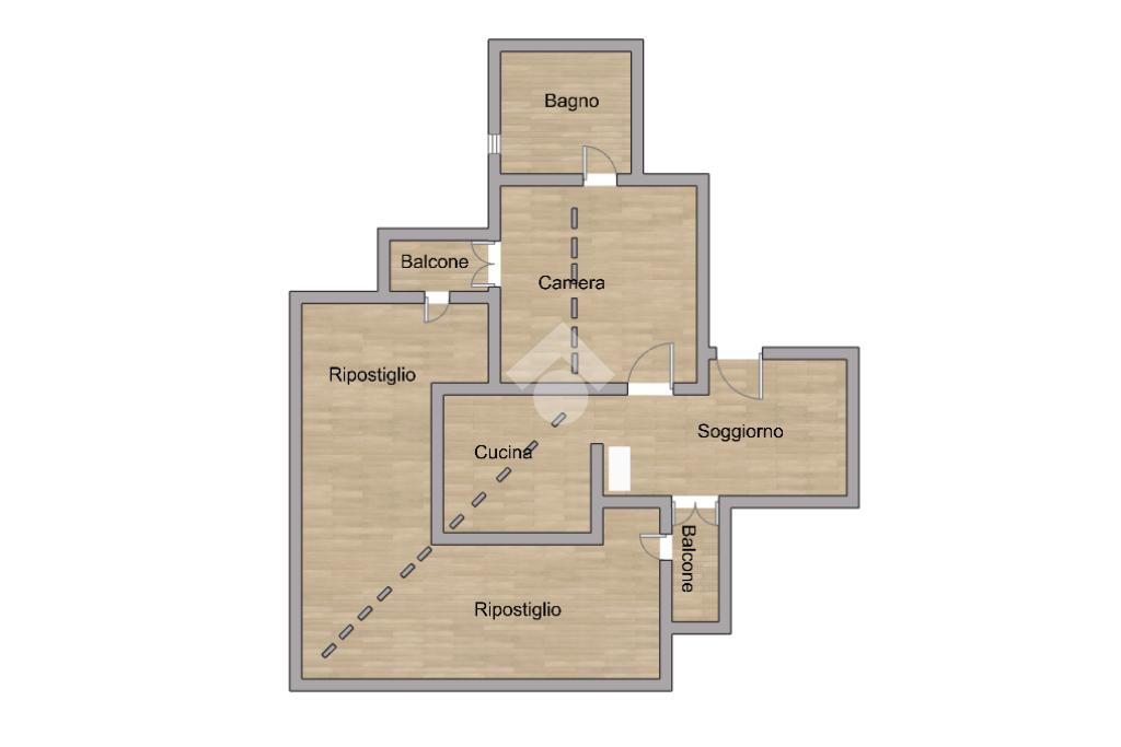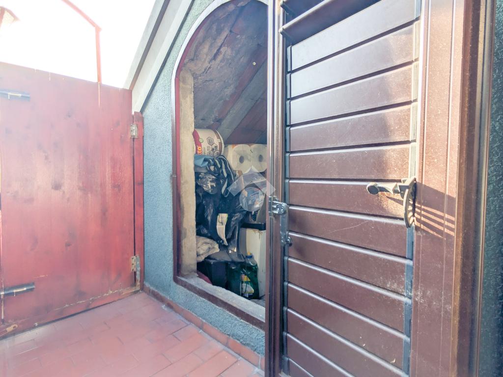 L’appartamento si apre su un luminoso soggiorno con angolo cottura e accesso al primo balcone. Proseguendo troviamo la camera da letto, anch’essa dotata di accesso a un secondo balcone, e il bagno finestrato con vasca. Completa la proprietà un ampio ripostiglio che si sviluppa intorno all’appartamento, offrendo uno spazio di grande utilità.