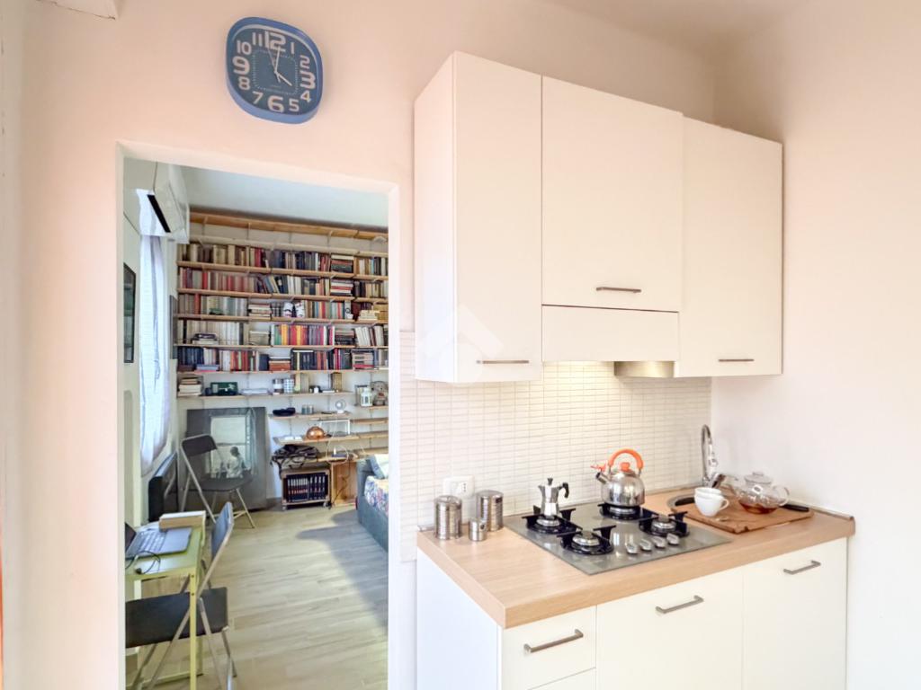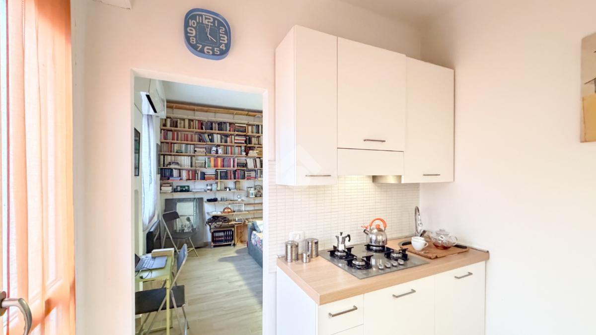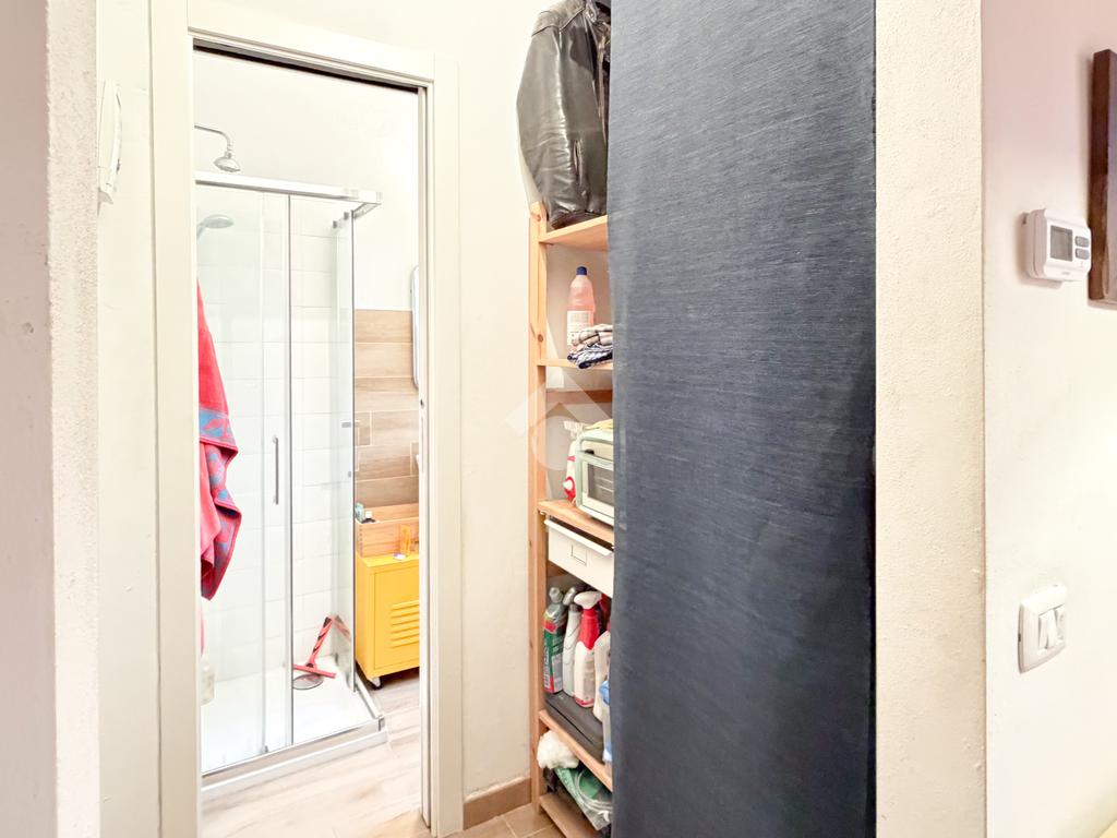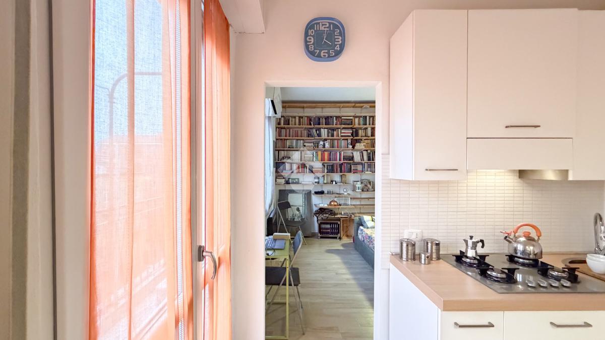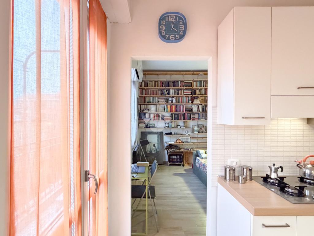 L’appartamento è situato al quinto ed ultimo piano, caratteristica che garantisce grande luminosità e ottima ventilazione naturale. Gli spazi sono ben distribuiti: ingresso su cucina a vista con accesso al balcone, zona notte separata e bagno finestrato, curato nei dettagli e completo di box doccia.