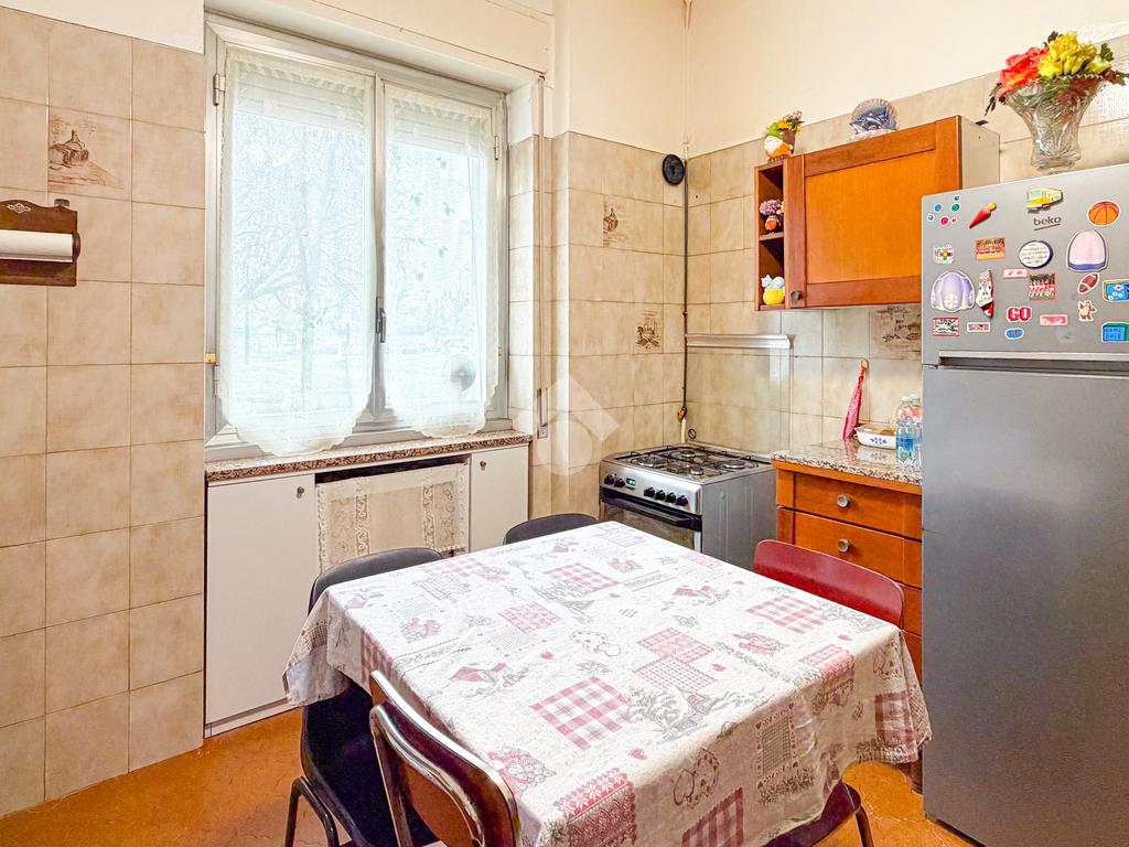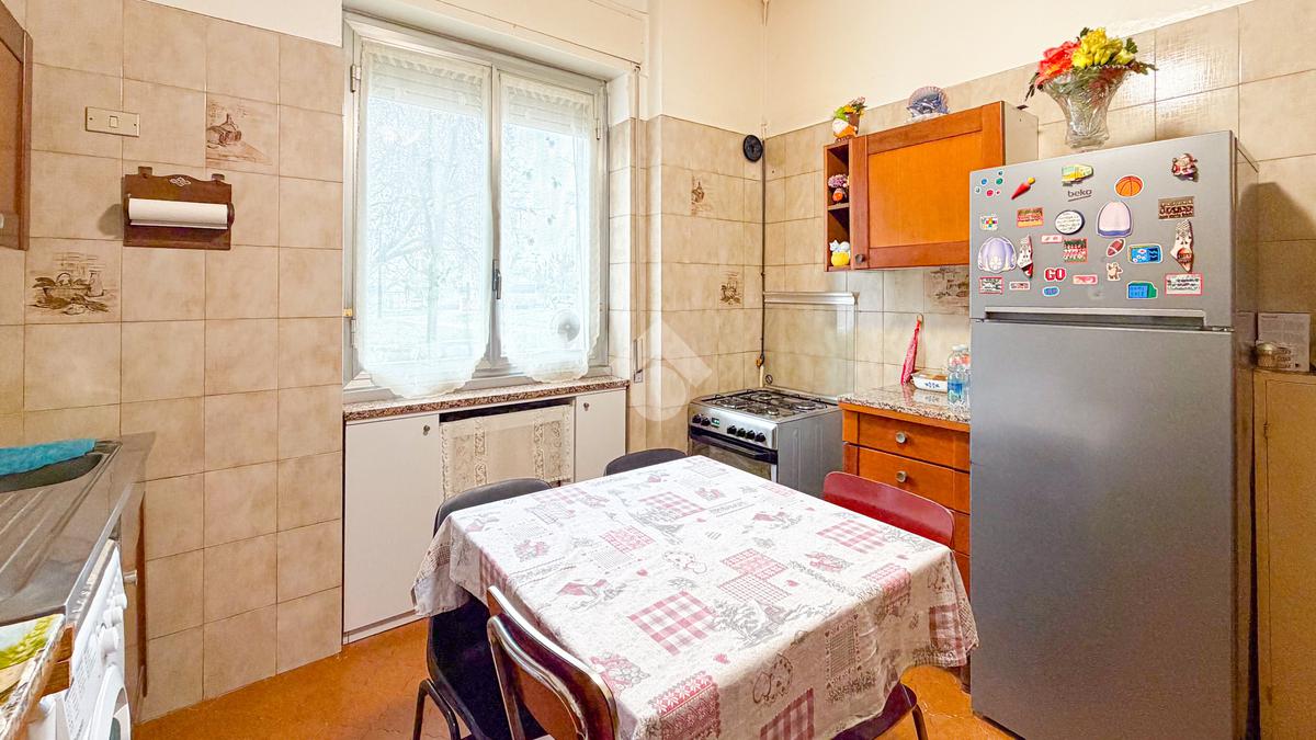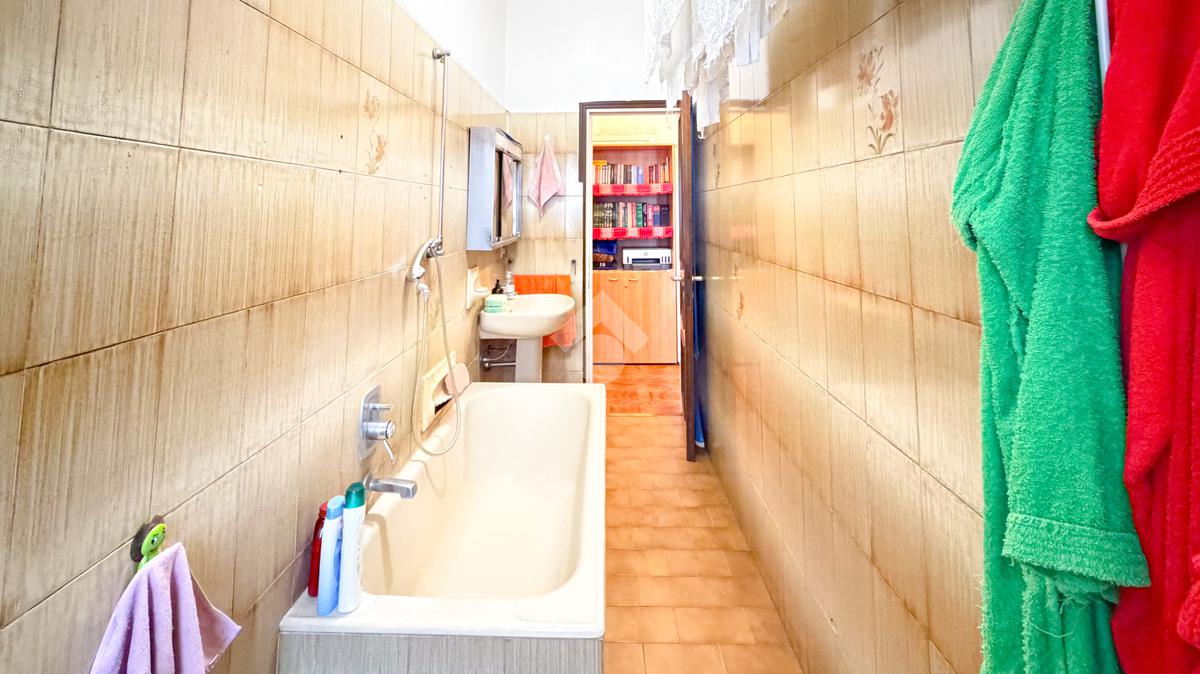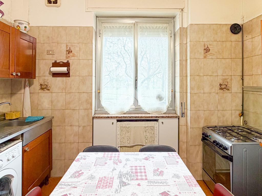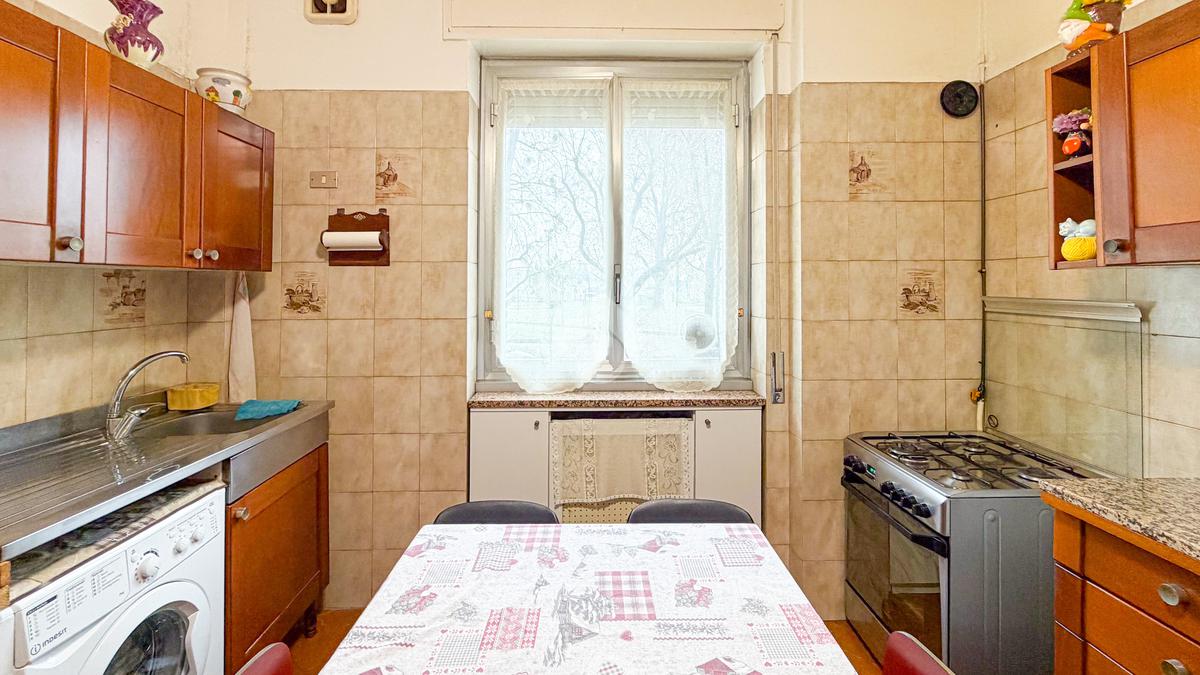 L’appartamento si apre su un ingresso che conduce a una comoda cucina abitabile; proseguendo troviamo un soggiorno ampio e luminoso. La camera matrimoniale è spaziosa, il bagno finestrato è dotato di vasca. È inoltre presente un grande ripostiglio, perfetto come spazio contenitivo o da ripensare come lavanderia o cabina armadio. Completa la proprietà un solaio.